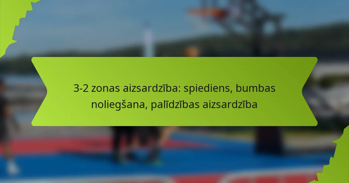 Palīdzības aizsardzība 3-2 zonā ir būtiska, lai aizsargātu grozu un novērstu vieglas punktu gūšanas iespējas. Tā ietver spēlētāju sniegšanu atbalstu komandas biedriem, kuri aizsargā pret uzbrukuma spēlētājiem, nodrošinot, ka tukšumi tiek segti un aizsardzība paliek saliedēta.